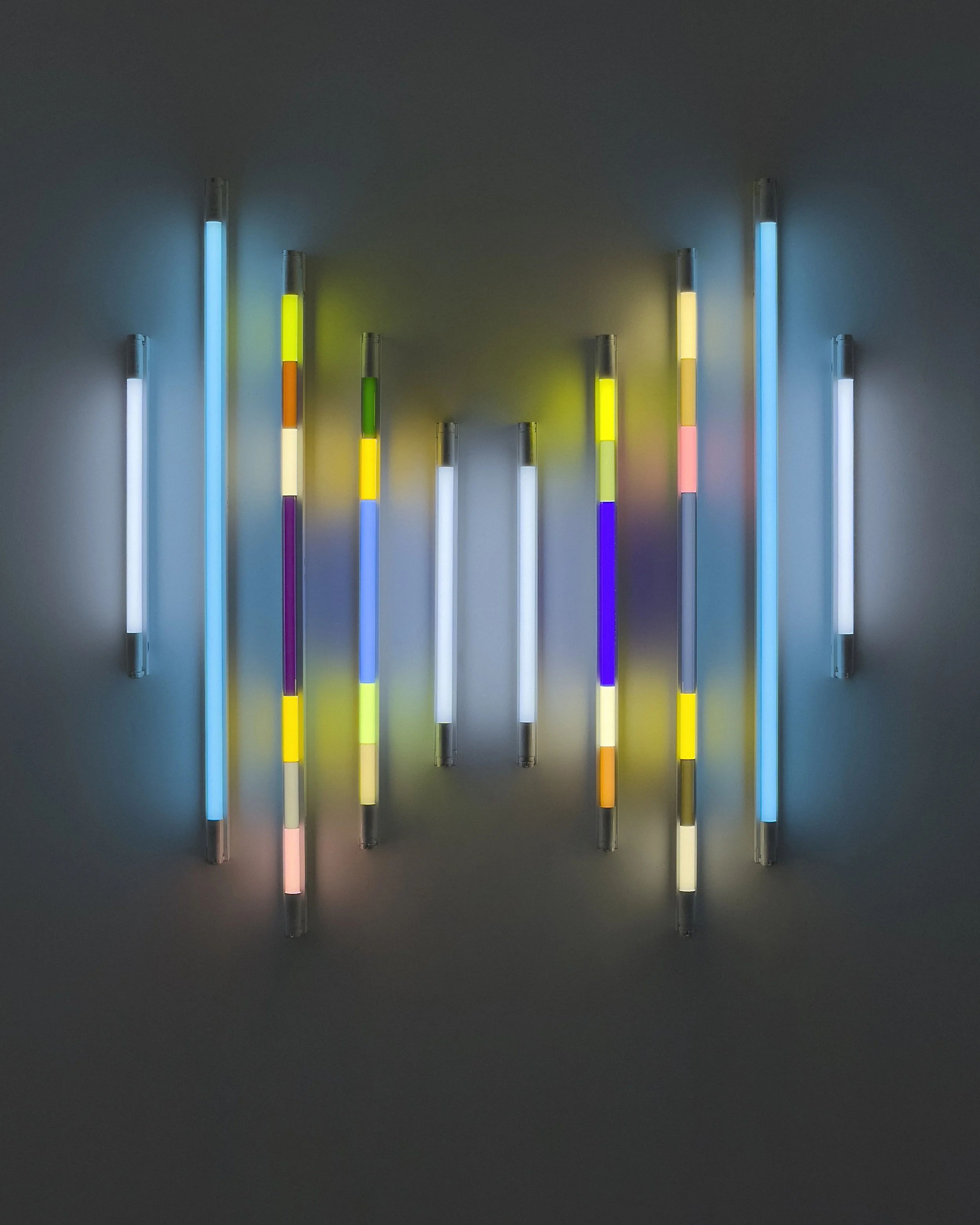 This piece precisely re-creates the color of light as recorded with a colorimeter at the grave of Vladimir Nabokov in Montreux, Switzerland. In his autobiography Speak, Memory, Nabokov discusses his “case of colored hearing,” describing in detail the color evoked in his mind by the sound of each letter of the alphabet. Each of the 26 filter colors in this piece corresponds to one of these color descriptions.