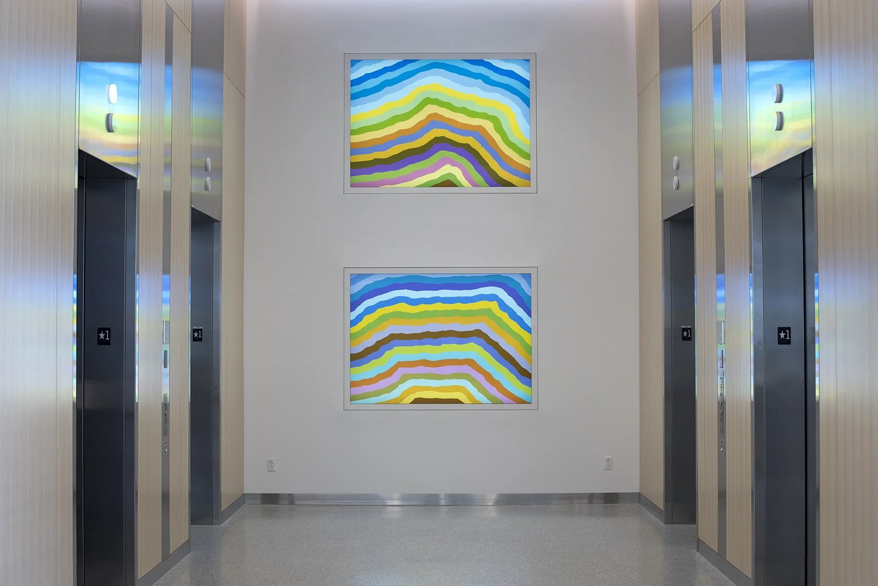 The composition of each lightbox is based on a different view of Going-to-the-Sun Mountain. The colors of each lightbox mix to precisely recreate the light measured from each corresponding viewing position in Glacier National Park, Montana.