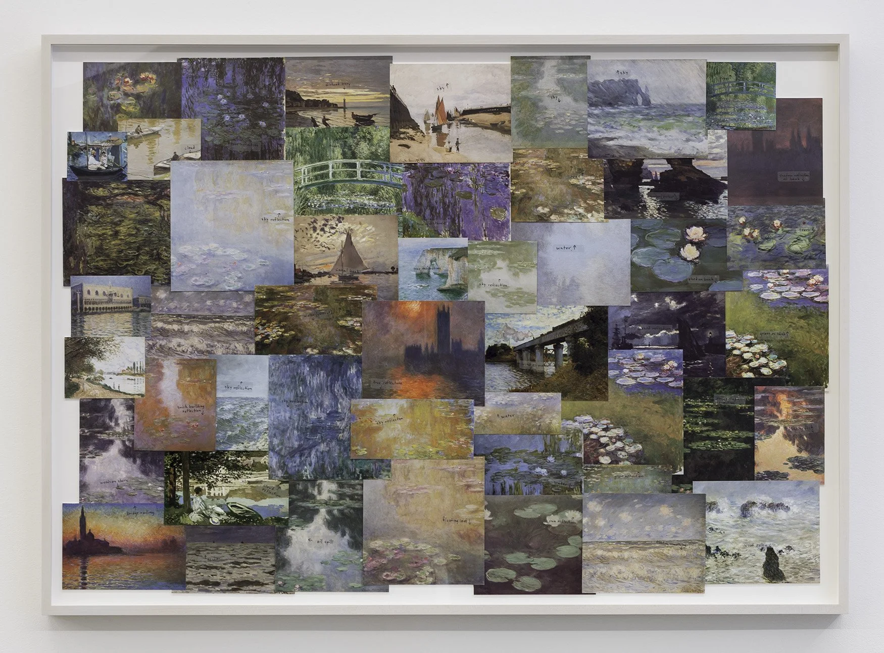This collage is based on observations taken from the Carroll Street Bridge over the Gowanus Canal in Brooklyn, NY. Various hues of the water were observed from different spots on the canal. Each color observed corresponds with one depicted in a representation of a painting by Monet.