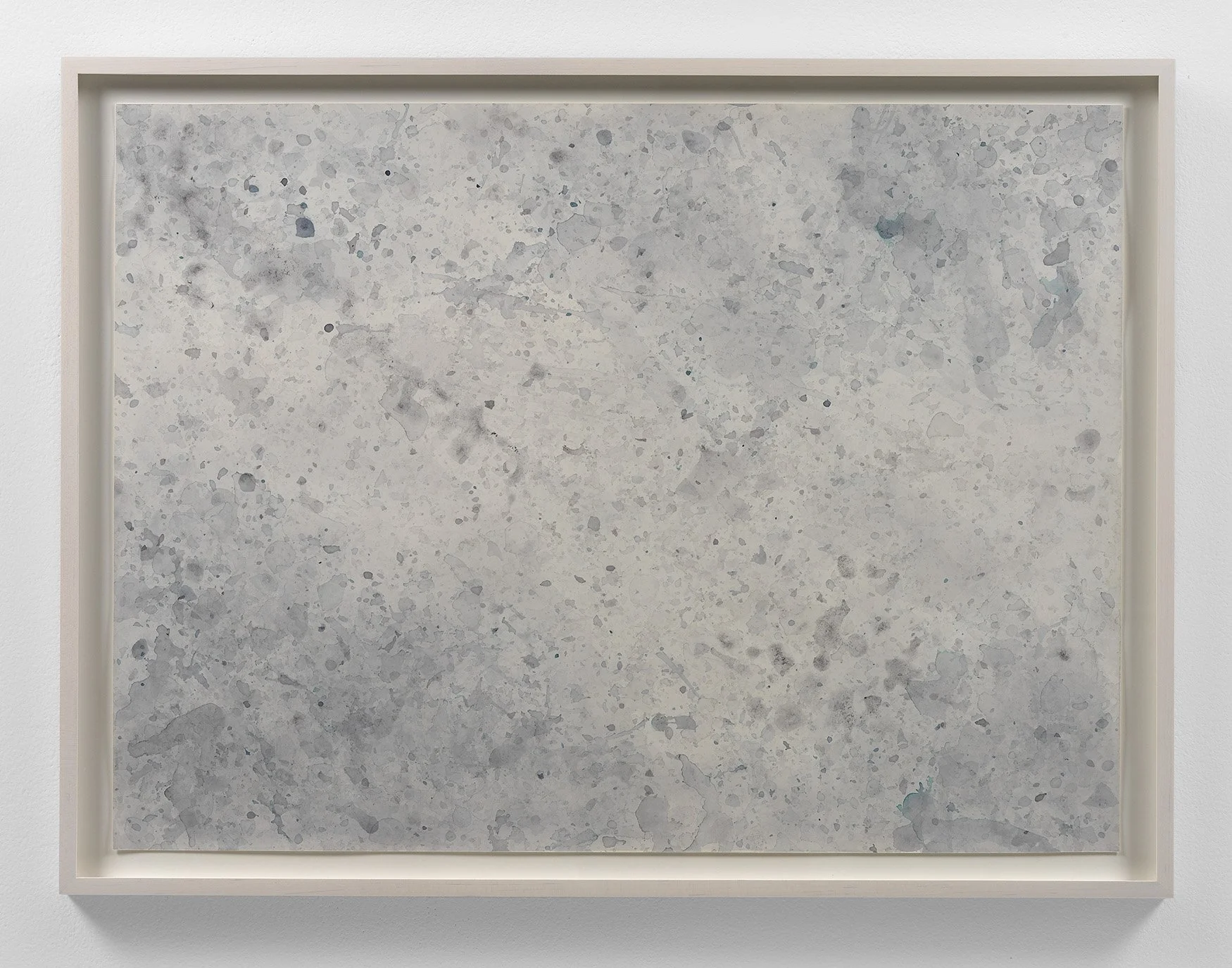 A precise rendering of a New Zealand glacier, based on a photograph, produced by melting successive layers of dyed ice varying in color and size on the paper.