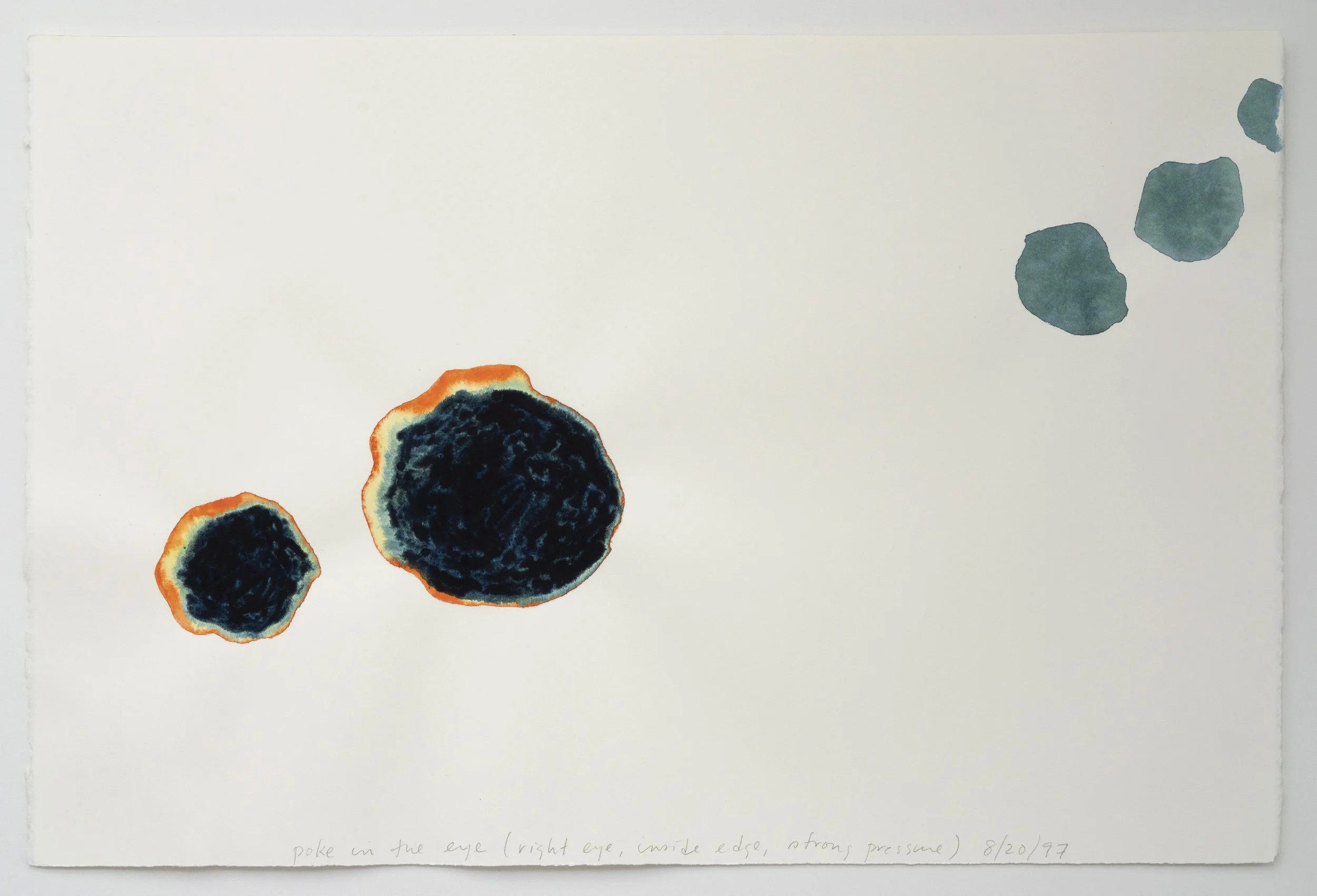 Poke in the Eye (Right Eye, Inside Edge, Strong Pressure) 8/20/97Watercolor and pencil on paper15” x 22”1997