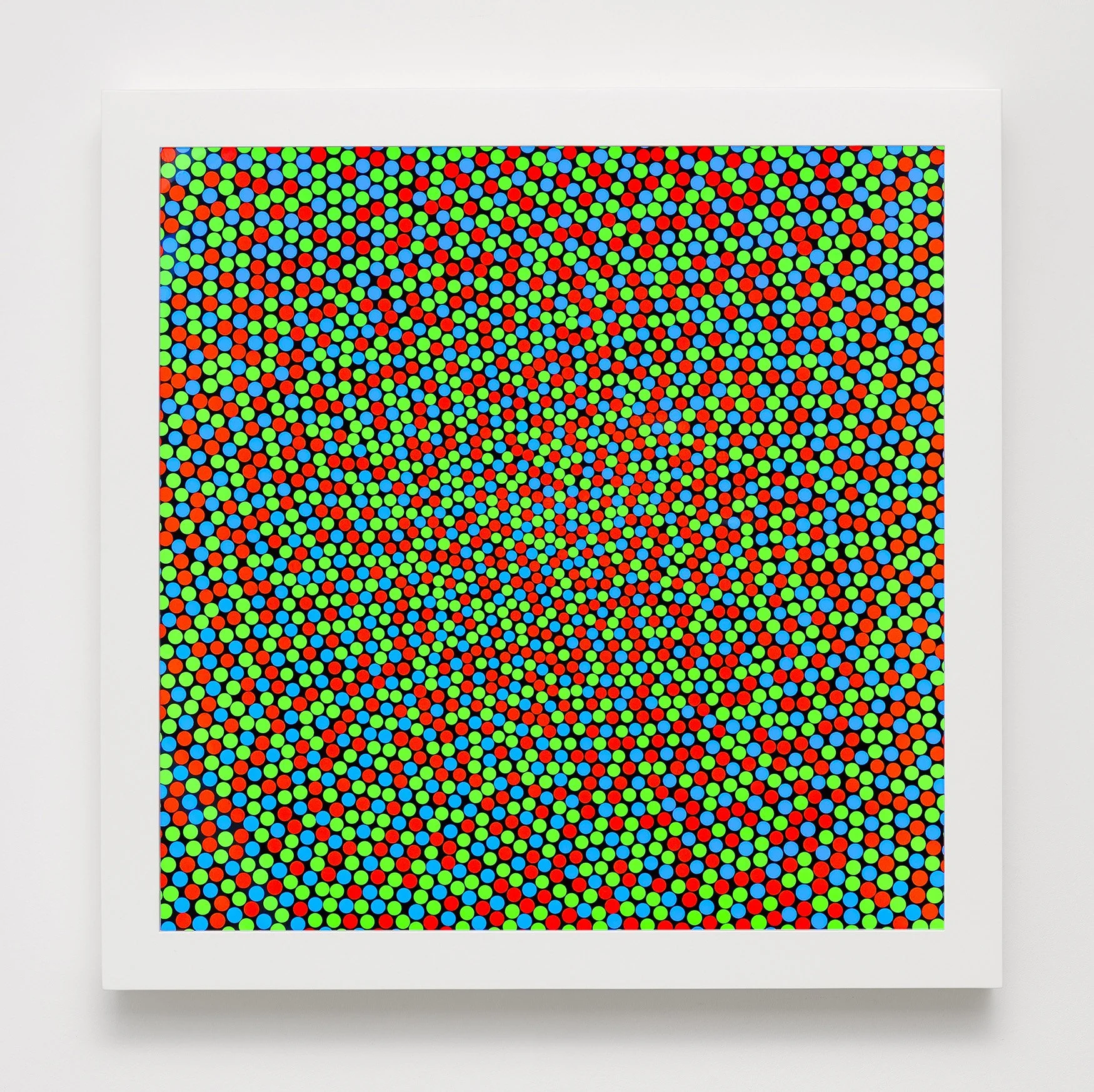 This lightbox uses the RGB color spectrum to emit a shade of white light. The arrangement of the dots is based on the receptors in the human eye.