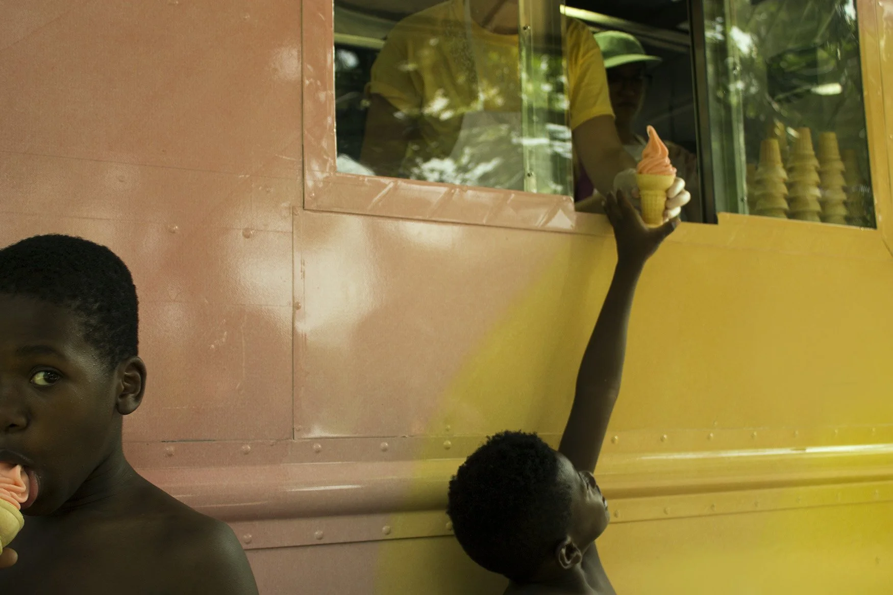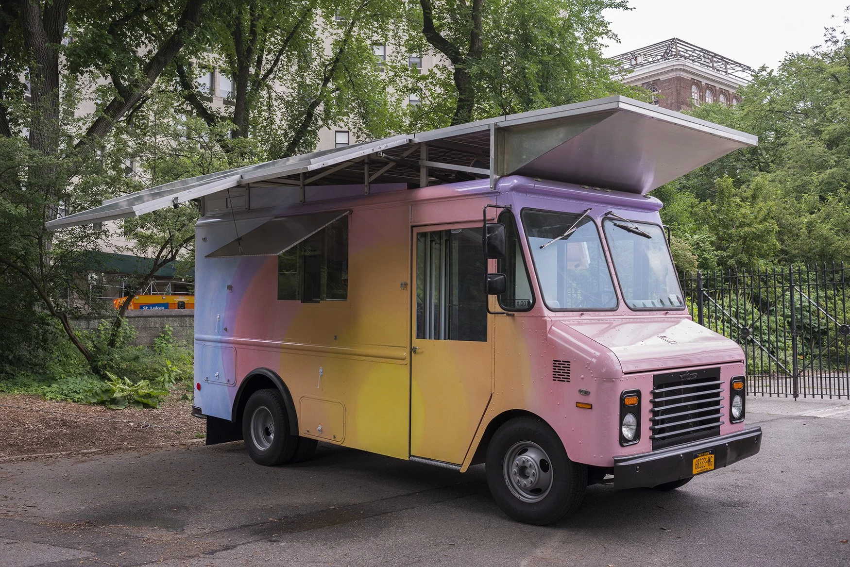 This solar-powered icecream truck serves soft-serve ice cream in the colors of a sunset as observed from the roof of the Metropolitan Museum of Art.