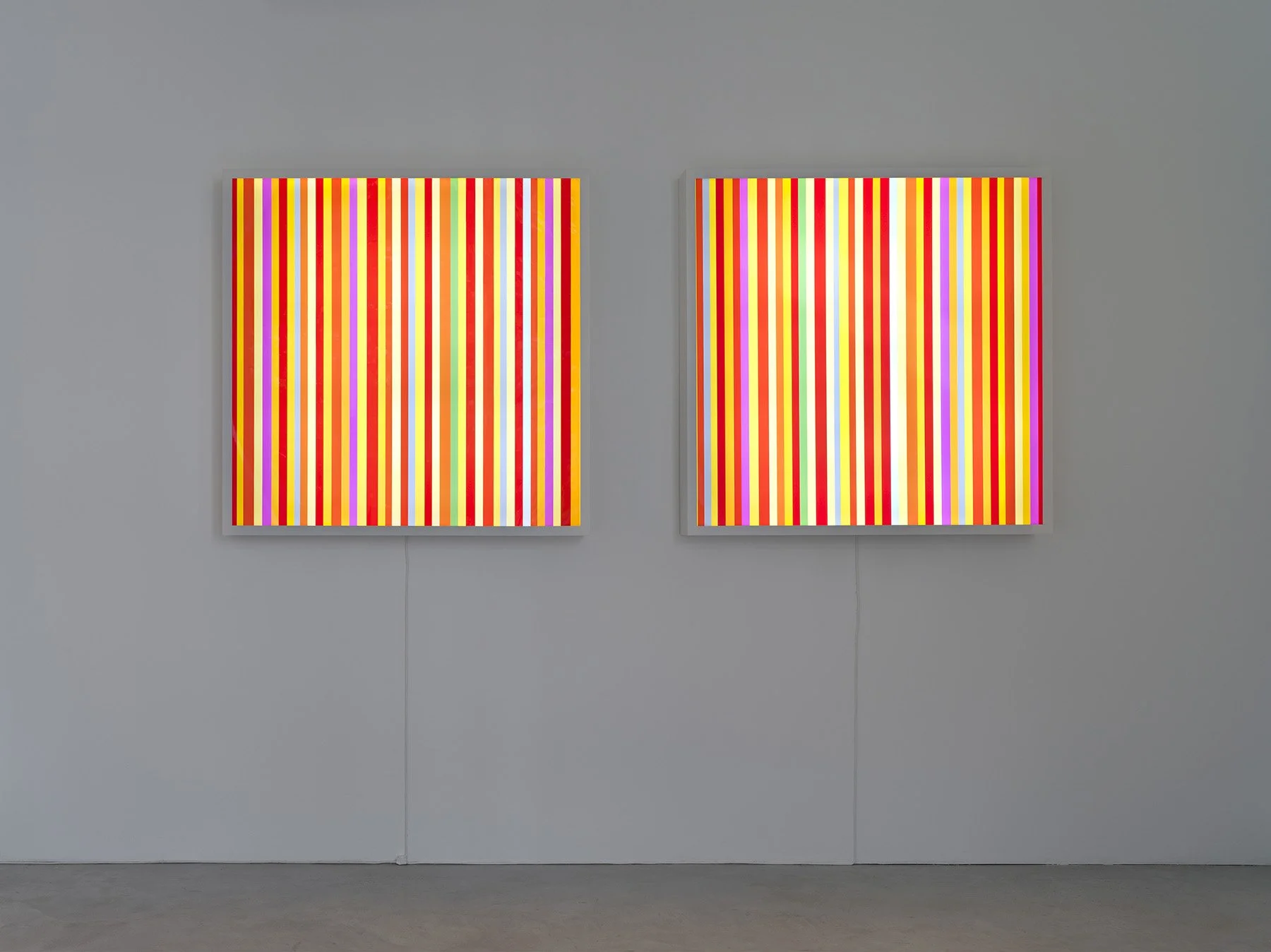 The colors emitted from these light boxes are based on the William Blake poem, “The Tiger.”