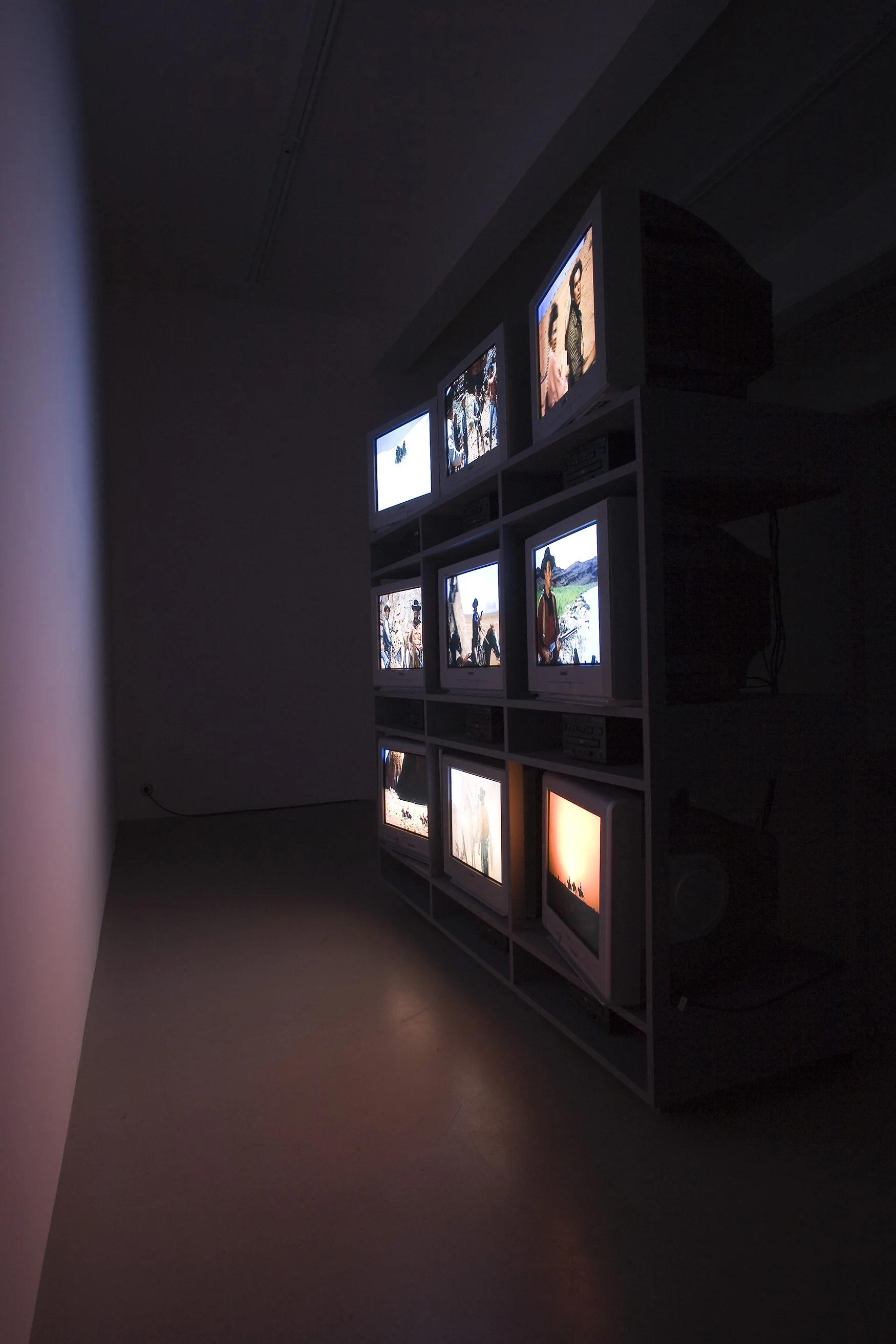 9 Channel Synchronized Video Installation with 9 TV Monitors