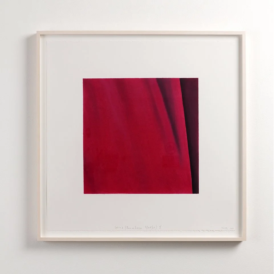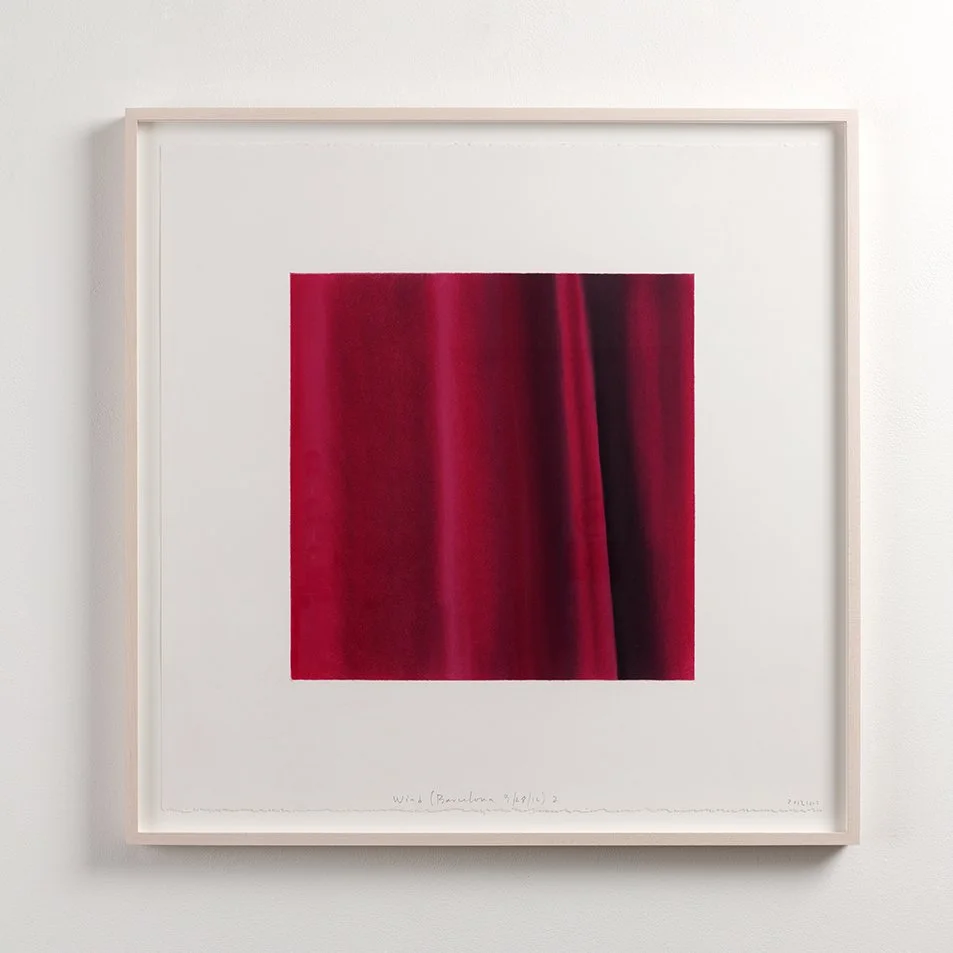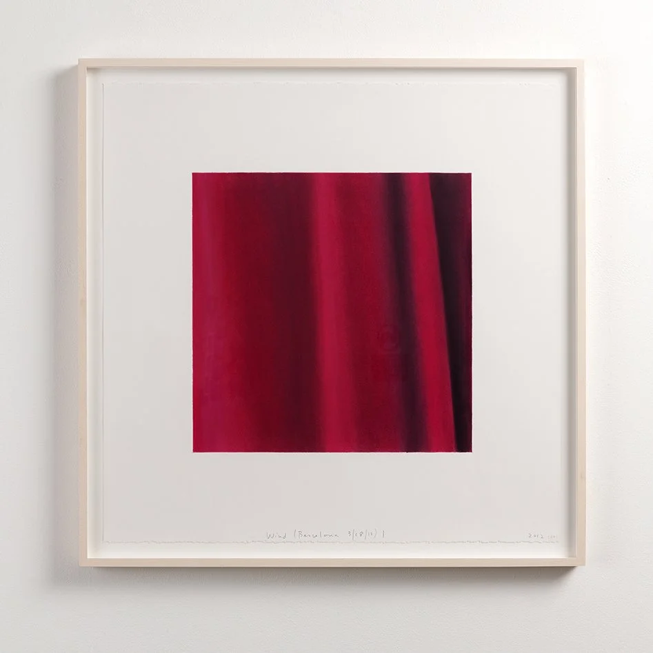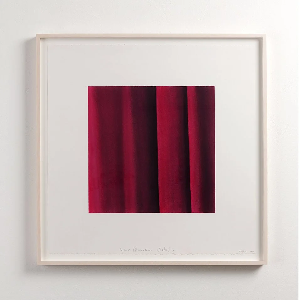 A suite of pastel drawings, partly inspired by Richter’s early curtain paintings, attempting to make a picture of the spring wind blowing through the Mies van der Rohe curtains in the Barcelona Pavilion.
